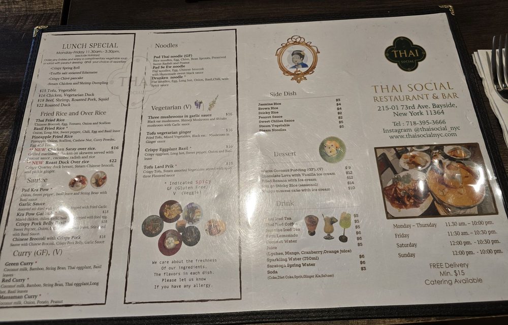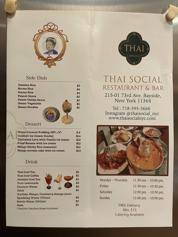 Welcome to Thai Social, a delightful culinary gem nestled in the heart of New York at 215-01 73rd Ave. Specializing in authentic Thai cuisine, Thai Social is not just a restaurant; it's a vibrant dining experience that celebrates the rich flavors of Thailand while maintaining a cozy and welcoming atmosphere.