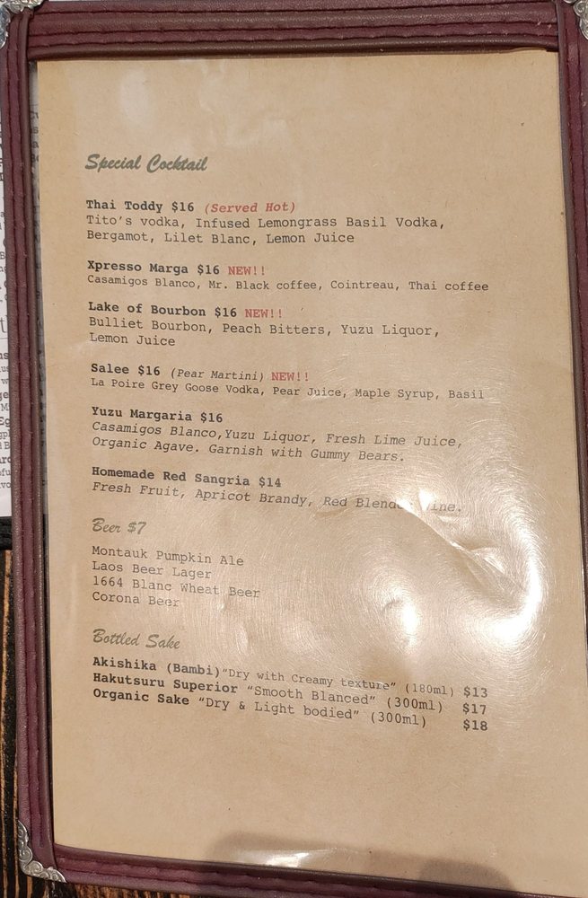 “ My girlfriend and I met up with some friends that were visiting from out of town. We were looking for a new Thai spot to try out and found this one. After seeing the great reviews, we decided to give this place a try. Upon arriving, we noticed the atmosphere was pleasant and welcoming! We ordered a few appetizers which were mushroom steamed dumplings, crab ragoon, spicy wings, and spring rolls! All were delicious and full of flavor! For entrees, we ordered tofu with pineapple fried rice and three mushroom with garlic sauce! Amazing flavors on both dishes! We also had a few drinks that tasted awesome! Service was very pleasant and much appreciated the conversation from one of our waitresses! Would definitely come back to this place! ”